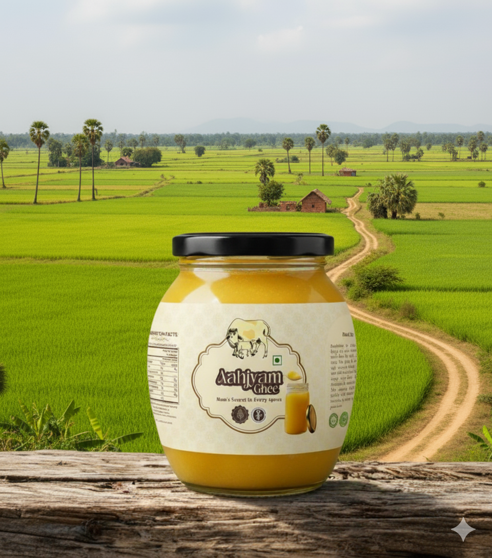Crafted from fresh, pure cow’s milk, our ghee is rich in aroma, flavor, and nutrition. Slow-cooked in the traditional method, it retains its natural golden color and wholesome taste.